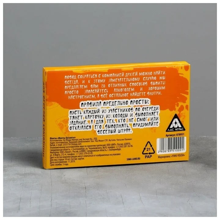 Купить игра для компании "фанты буханты" 20 карт от 100 руб. с доставкой до пункта выдачи в Уссурийске. Интернет магазин ДекаМаркет. Оплата при получении.