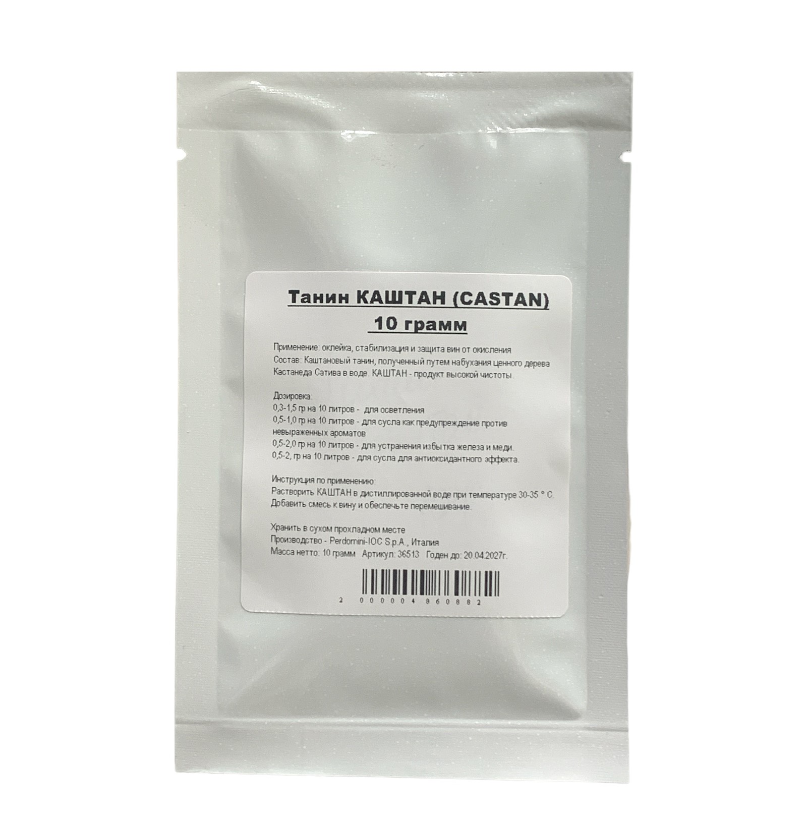 В домашнем виноделии главное – это ингредиенты, а также соблюдение технологии приготовления вина. Вот почему Танины КАШТАН (CASTAN), 10 гр является необходимым атрибутом винокура. Покупателям нашего интернет-магазина мы сделали цену всего 80 рублей. И выгодную доставку до адреса Ростовская обл., Аксайский р-н, Аксай г., просп. Ленина, 30 в Аксае.